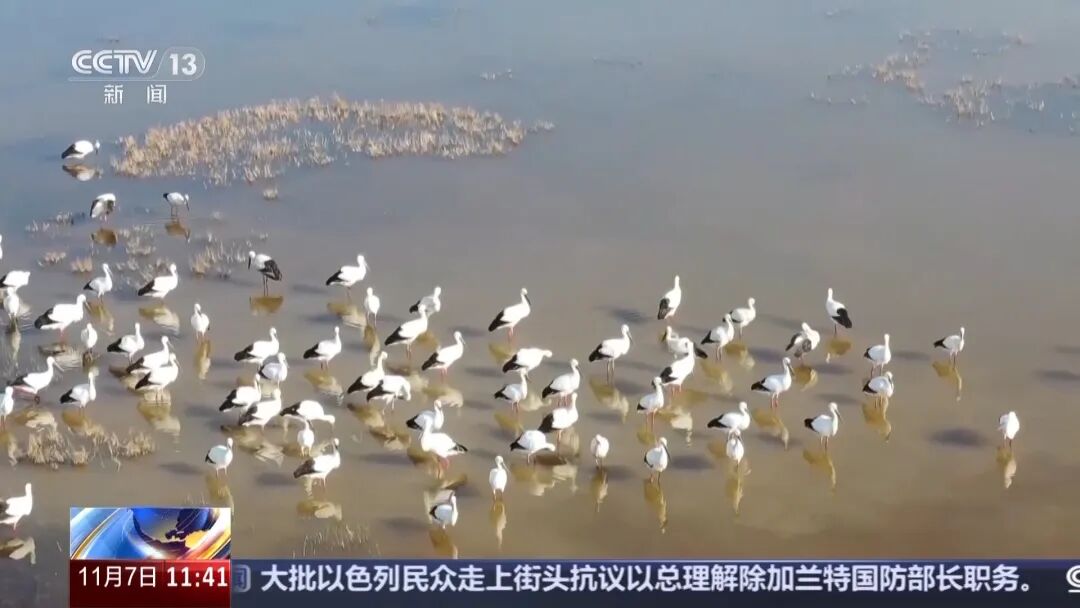 根据统计,从今年10月中旬第一批东方白鹳的先头部队到达算起,截至目前,已有上千只东方白鹳、近千只白琵鹭等国家一、二级保护鸟类陆续到达,而像反嘴鹬及其他雁、鸭类候鸟更是以千为单位飞抵湿地,目前日均鸟类观测量上万只。